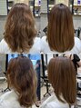 クセが気になるけど、透明感があるカラーがしたい人に向け「ストレートヘア+透明感カラー」を手に入れたい方にオススメです。縮毛矯正ではなく、ケラチンタンパクの効果でツヤツヤでふわっと自然なストレートヘアになれる薬剤と技術です。