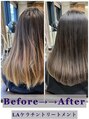 クセが気になるけど、透明感があるカラーがしたい人に向け「ストレートヘア+透明感カラー」を手に入れたい方にオススメです。縮毛矯正ではなく、ケラチンタンパクの効果でツヤツヤでふわっと自然なストレートヘアになれる薬剤と技術です。