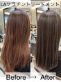 クセが気になるけど、透明感があるカラーがしたい人に向け「ストレートヘア+透明感カラー」を手に入れたい方にオススメです。縮毛矯正ではなく、ケラチンタンパクの効果でツヤツヤでふわっと自然なストレートヘアになれる薬剤と技術です。