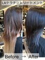 クセが気になるけど、透明感があるカラーがしたい人に向け「ストレートヘア+透明感カラー」を手に入れたい方にオススメです。縮毛矯正ではなく、ケラチンタンパクの効果でツヤツヤでふわっと自然なストレートヘアになれる薬剤と技術です。