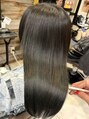 クセが気になるけど、透明感があるカラーがしたい人に向け「ストレートヘア+透明感カラー」を手に入れたい方にオススメです。縮毛矯正ではなく、ケラチンタンパクの効果でツヤツヤでふわっと自然なストレートヘアになれる薬剤と技術です。