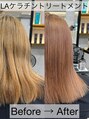 クセが気になるけど、透明感があるカラーがしたい人に向け「ストレートヘア+透明感カラー」を手に入れたい方にオススメです。縮毛矯正ではなく、ケラチンタンパクの効果でツヤツヤでふわっと自然なストレートヘアになれる薬剤と技術です。