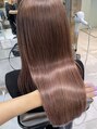 クセが気になるけど、透明感があるカラーがしたい人に向け「ストレートヘア+透明感カラー」を手に入れたい方にオススメです。縮毛橋正ではなく、ケラチンタンパクの効果でツヤツヤでふわっと自然なストレートヘアになれる薬剤と技術です。