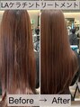 クセが気になるけど、透明感があるカラーがしたい人に向け「ストレートヘア+透明感カラー」を手に入れたい方にオススメです。縮毛矯正ではなく、ケラチンタンパクの効果でツヤツヤでふわっと自然なストレートヘアになれる薬剤と技術です。