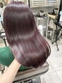 クセが気になるけど、透明感があるカラーがしたい人に向け「ストレートヘア+透明感カラー」を手に入れたい方にオススメです。縮毛橋正ではなく、ケラチンタンパクの効果でツヤツヤでふわっと自然なストレートヘアになれる薬剤と技術です。