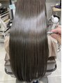 少しクセが気になるけどブリーチが必要な透明感カラーがしたい人に向けた提案。他店とは違うストレートヘア+透明感カラーが手に入り、縮毛矯正ではなく、ツヤツヤで自然なストレートヘアになれる独自理論のリピート率99%のケラチントリートメント。担当 高沼