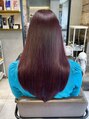 クセが気になるけど、透明感があるカラーがしたい人に向け「ストレートヘア+透明感カラー」を手に入れたい方にオススメです。縮毛橋正ではなく、ケラチンタンパクの効果でツヤツヤでふわっと自然なストレートヘアになれる薬剤と技術です。