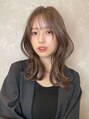 セミロングのレイヤースタイル。顔周りに前上がりのレイヤーを入れてカット。顔周りが流れるようにスタイリングし、くびれを使って完成。ワンホンヘア、ヨシンモリ、韓国ヘア、韓国レイヤー、レイヤーヘア、中韓MIXヘア、中韓ミックス、ロングレイヤー
