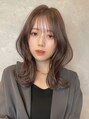 セミロングのレイヤースタイル。顔周りに前上がりのレイヤーを入れてカット。顔周りが流れるようにスタイリングし、くびれを使って完成。ワンホンヘア、ヨシンモリ、韓国ヘア、韓国レイヤー、レイヤーヘア、中韓MIXヘア、中韓ミックス、ロングレイヤー
