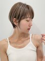 ハイライトのくびれショートヘア。くびれ感を出すように後ろをスッキリカットして、耳周りも軽くして仕上げます。ハイライトは毛流れに合うように入れてコントラストを出します。仕上げはシアバターとオイルをつけて完成です。