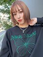 フェイスレイヤーを入れた切りっぱなしボブ。ブリーチ1、1,5回して色を抜いた後にココアベージュ系カラーでオンカラー。まっすぐにして毛先外はね感を出すのがスタイリングポイント。