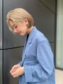 カーテンバングが流れるようにフェイスレイヤーを入れたミニボブ。ブリーチ1,2回して色を抜いた後にベージュ系カラーでオンカラー。丸み感を出すのがスタイリングポイント。髪質改善トリートメントでうねりや捻転毛を改善しツヤツヤでまとまりある髪に