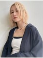 ブロンドベージュのフェイスレイヤーボブ。ブリーチ2回して、ホワイトベージュでオンカラー。カットは顔まわりを包むようにレイヤーを入れて完成