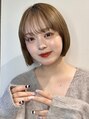 毛先を揃えた切りっぱなしボブで、シンプルながらも洗練された印象に。透明感のあるベージュカラーが柔らかさを引き立て、大人っぽさと可愛さを両立できます。
