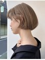 切りっぱなしボブでカット後、フロントにカーテンバングを作り、流れやすくレイヤーを入れる。スタイリング苦手な人はパーマでセットは朝たったの3分に。カラーはブリーチ後に赤味を抑えたモカベージュでオンカラー。