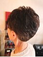 軽く印象で毛流れを楽しめるショートStyleです*髪を前や後ろ向きに流すことが可能なので、ショートで印象を変えて楽しめます♪全体にナチュラルにパーマをかけることで、馴染みがよく360°美しいシルエットに。毎日のセットも楽になります☆