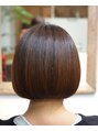 パツッとラインが出るようにカットしたボブ。実は、量感を少しでも軽く感じれるように中を短くカットし、表面の髪が被るようにしております!