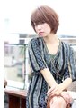 全体に細かいレイヤーをいれて柔らかなボリュームを持たせたひし形にしてます。目にかかる位に設定した流し前髪で少し色っぽく、大人可愛い印象に!顔にかかってくる重さとふんわりとした軽さの混在したスタイルです!動きを付けたパーマがあれば簡単です☆