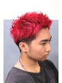 ツーブロックのスタイルにブリーチONカラーでレッドに!レッドはカラーリンスでダメージレス!他と差を付けたい方☆オススメです!