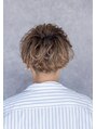 襟足、サイドはしっかり刈り上げでメリハリをだして、トップは重めのマッシュベースのラインでカットランダムにパーマをかけて毛先に動きをつけます。