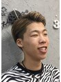 まわりにツーブロックを入れてさっぱりし、7:3でカッチリとセット!ベージュカラーで秋らしいカラーに!