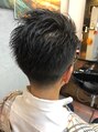 まわりはツーブロックで短めにスッキリし、ギリギリ分けて流せるくらいにトップは短くかるく立たせるくらいに!