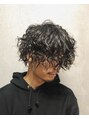 ミディアム設定に、回りはさっぱりフェードで男らしさを。トップはウェーブ感を出す為に強めのスパイラルを。