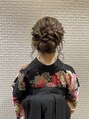 卒業式の袴におすすめなアップスタイル。大人っぽい黒のお着物に合わせて襟足スッキリなきれいめアップ!金箔と水引を使って華やかに仕上げました☆