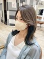 人とかぶらないブルーのインナーカラーはいかがでしょうか?!全体ブリーチ1回必須です!明るめのオリーブベージュに、インナーカラーをブルーにしました☆くびれヘアでインナーカラーをアピールしましょう♪アルティストカラーでダメージレス♪