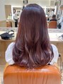 毛先をそろえて全体にほんのりレイヤーを入れたヘアスタイルは、全体をワンカール巻くだけでもふわふわになりかわいい☆顔周りと表面を外巻きにしたらくびれヘアにもなります!髪が綺麗に見えるピンクカラーは、アルティストカラーで+2200円です!