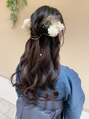 ゆるっとカールが上品なハーフアップアレンジ。ドライフラワーや金箔、水引きを使って華やかにアレンジしました!大人っぽく見せたい方、キレイめにしたい方にもおすすめです◎結婚式などのお呼ばれにもぜひ♪