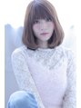 肩にあたるぐらいでカットしブラントカットでラインをだし、重めのバングで目のギリギリにしました。オフィスにぴったりなできる女性のイメージし、その中にキュートなイメージも入れたスタイルに仕上げました。カラーはペールアッシュで仕上げました。