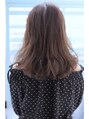 鎖骨下ラインでカットしゆるふわなカールを出すために全体に軽さを入れ動きのスタイルになるようにしました。前髪は軽めでラウンドの前髪にし小顔バングにしカラーはブルーアッシュ系の落ち着いた色味なんですが透明感がある感じに。
