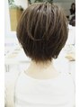 バックからサイドにかけて前上がりに切ったショートスタイルです。前髪を残すことで女性らしい雰囲気に☆カラーは【アプリエカラー】の少し明るめのベージュで。耳かけエアリーショートは少し軽めの質感がオススメですよ★