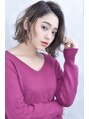 耳かけゆるウェーブ前下がりボブディ無造作カールデザインカラー
