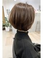 襟足は首が綺麗に見える長さでサイドはアゴ少し下の長さになるように切りっぱなしボブでカットし、横から見た時のシルエット頭の丸みが綺麗になるようにグラデーションを重ねるようにカットしてます!カラーはアプリエカラーで☆ミニマムボブ