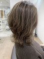 肩ラインのボブをベースに表面にレイヤーを重ねて入れることで、毛先の動きを出やすくしてます。カラーはアプリエカラーを使用しクリアな透明感を出しながらも黄色くならない上品なベージュカラーです