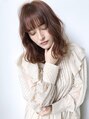肩にあたるぐらいでカットし下が外ハネ長さで表面のみにレイヤーを入れ動きが出るようにし全体にボリュームが出やすいところは軽さを入れコンパクトにしました。カラーはピンクベージュで艶のある柔らかい色味でふんわりとしたイメージの色味でる。