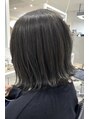 [気に入って頂いたスタイルは、ブックマークをしてご提示ください]人気スタイル。切りっぱなしボブ。カットラインはハネやすいように、巻きやすいように切っています。カラーはアディクシーカラーを使って透明感のあるアッシュグレー。