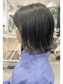 [気に入って頂いたスタイルは、ブックマークをしてご提示ください] 人気の外はねボブスタイル。巻かなくてもまとまります。26mmで巻く事で動きのあるボブスタイルが作れます。カラーは暗めのグレージュカラーです。