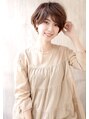 ひし形のラインをベースに柔らかいふんわりとした女性らしい丸みのを出したシルエットにし大人ショートに!前髪は斜めの毛束感を出した小顔バングにしました。カラーはハイライトを入れオンカラーでアッシュベージュ系の色味にし柔らかいい印象に。