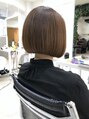 襟足ぎりぎりまでカットしサイドはアゴ下で前下がりの丸みのあるボブスタイルにし内側のボリュームが出やすいところはしっかり軽さを入れコンパクトなスタイルにしました。ブックマークをクリックしカウンセリング時にご利用ください。