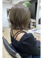 [気にに入って頂いたスタイルは、ブックマークをしてご提示ください] 赤み消し 透明感のあるオリーブグレージュ☆ 切りっぱなしボブで首元すっきりスタイル。