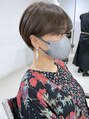 襟足はちょこっと刈り上げでサイドは耳にギリギリかかる位置でカットしています。低めの丸みが出るように軽さの入れ方を工夫しています。カラーはアッシュベージュで透明感カラーで柔らかさを出しました。石田指名をクリックして予約お待ちしています。