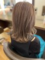 大人っぽい長さと外はねにベージュのハイライトを重ねて動きを出しました!くすみも少し入れてシアー感もあり柔らかい印象です♪