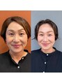 左がビフォー、右がアフター。ゆるめのパーマに顔まわりにフェイスフレーミング!さらにおしゃれママに大変身です!!