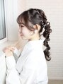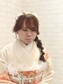 成人式ヘア 編みおろしスタイル 白地の絞りのお振袖に合わせて、ヘア飾りで華やかに仕上げました。2027・28年度の成人式のご予約をお受けしております。詳しくはお電話でお問い合わせください。電話:084-959-5715