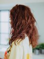 バング長めのロングスタイル。全体的に無造作なウェーブをつけています。ウェーブをしっかりめにほぐして無造作感を出すことでナチュラルなセクシーで流行りのオフェロスタイルになります!顔まわりにつよくウェーブを出すのがポイント!