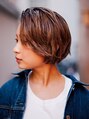 カットはネープギリギリでのリップラインのボブスタイルでトップにレイヤーをいれました!カラーはハイライトを入れて明るめにしつつ、オレンジ系のカラーにしました!バングを作らないで流すことによりリップラインのボブでもカッコよくしました
