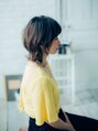 肩下くらいでミディアムの長さから前上がりに切ってバングもワイドバングにし、斜めに短く切って軽くしました!なるべく赤味の少ないカラーでクールな雰囲気を出すのがオススメです!